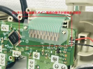 スポンジの下に詰め物をして厚みを持たせ、フレキシブル基板とメイン基板の端子がしっかり密着するように出来れば、勝手に動くという症状が改善する場合があります