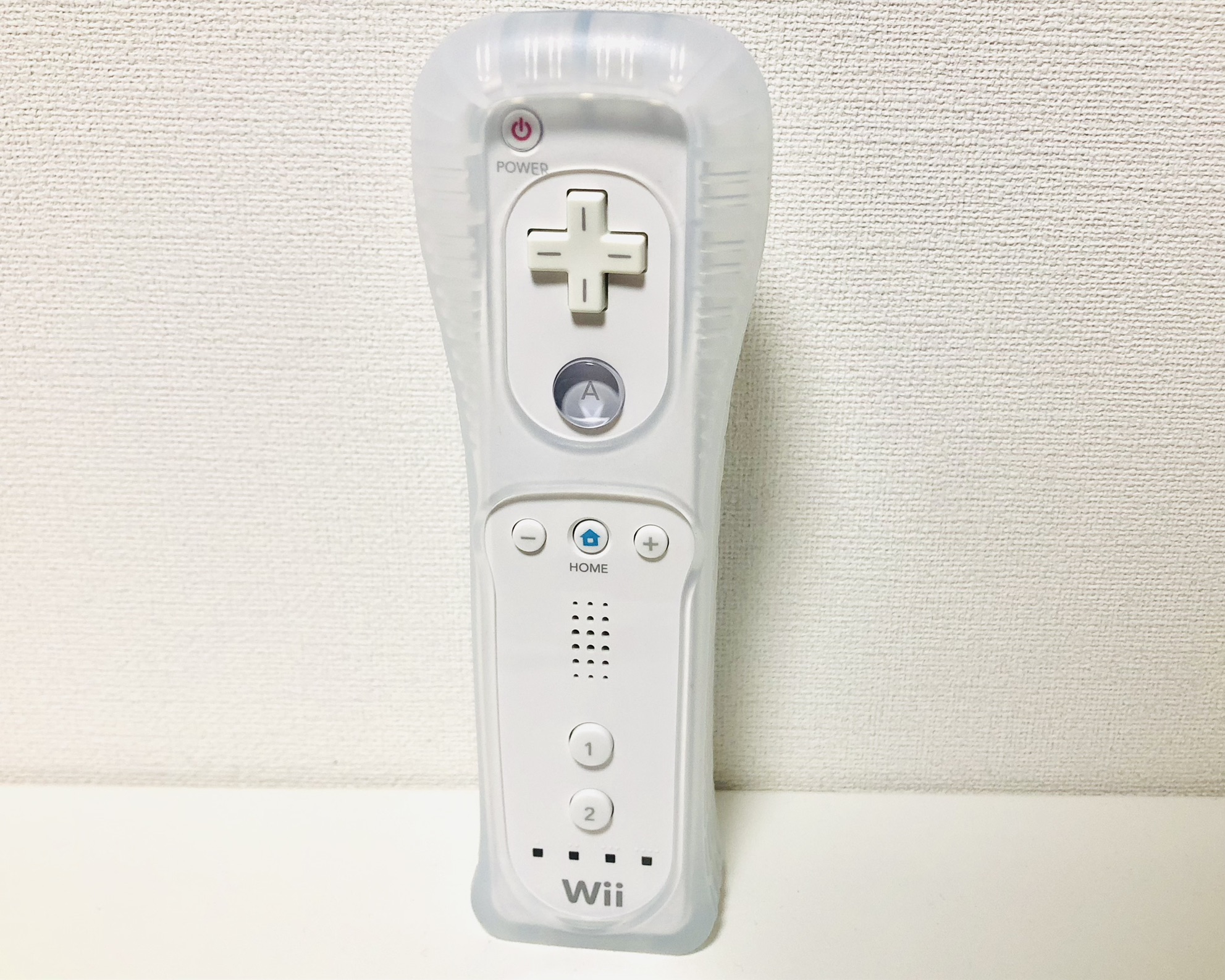 Wiiリモコン(Wiiリモコンジャケット同梱)は名前の通り、Wiiリモコンにシリコンジャケットが付属した物となります。Wiiリモコンを振って遊ぶソフトも多いのですが、手からすり抜けて人や物を傷付けないようジャケットが同梱されたリモコンが発売されました。