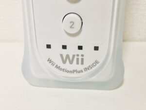 WiiリモコンプラスはWiiモーションプラスをリモコンに内蔵したコントローラーになります。初代のWiiリモコンと形の違いはなく、リモコン下部の「Wii MotionPlus INSIDE」の印字が目印です。