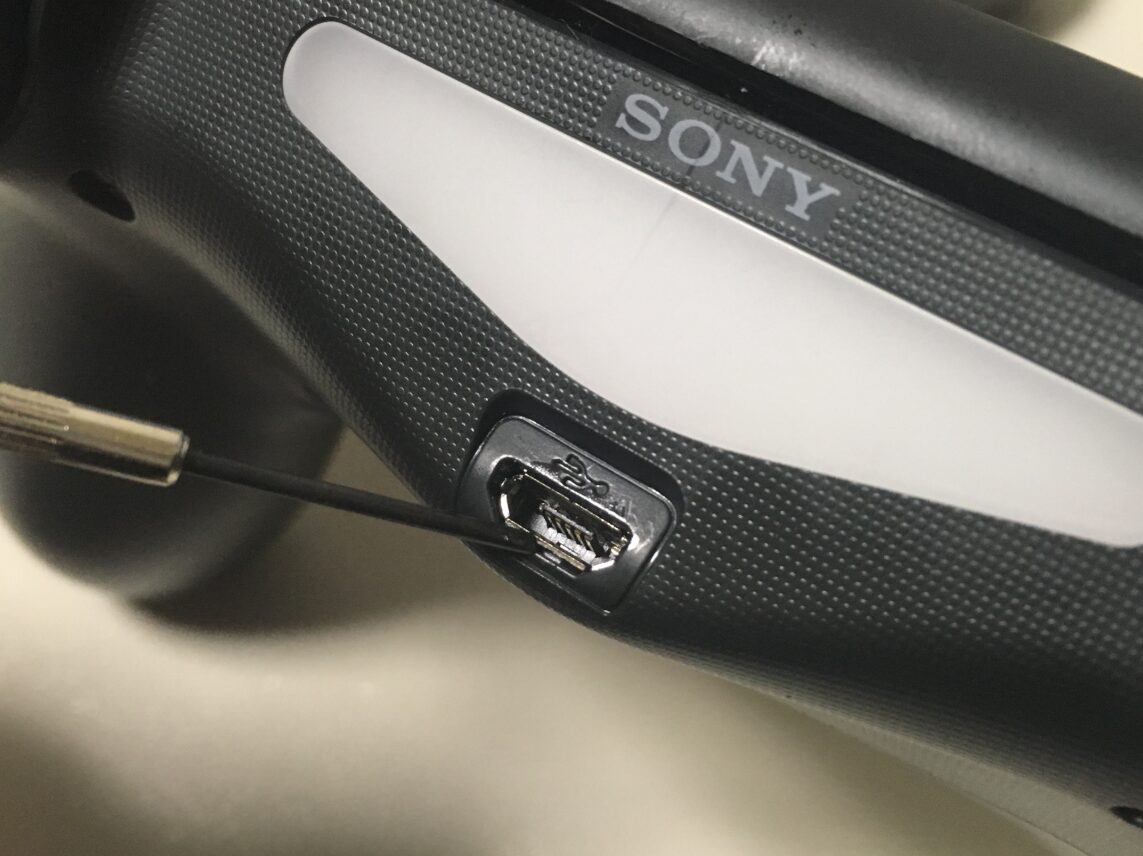 USBケーブルの抜き差しを繰り返していると、コントローラーのmicro-B端子が緩み、USBケーブルがグラついて接触不良を起こすことがあります。端子にゆるみが見られる場合には、細いドライバー等で端子の広がりを戻すと症状が改善することがあります。